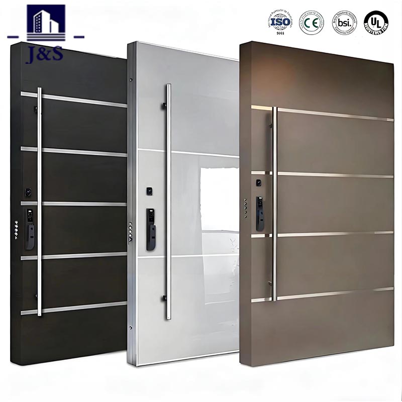Улучшите свой вход с помощью стальной защитной двери от J&S, предлагаемой по конкурентоспособной цене от надежного китайского производителя. Сочетая надежную безопасность с современной минималистской эстетикой, он имеет гладкие горизонтальные металлические полосы и прочный каркас из нержавеющей стали. Эта стальная защитная дверь, разработанная для защиты от кражи и атмосферных воздействий, идеально подходит как для входов в жилые, так и в коммерческие помещения. Его изысканная матовая поверхность дополняет современный экстерьер, а гладкая, легкая в уходе поверхность обеспечивает длительный блеск. Соответствуя самым высоким стандартам безопасности, он доступен в индивидуальных размерах, которые идеально подходят к вашему дверному проему, что делает его идеальным выбором для покупателей, ищущих надежного поставщика или заводского производителя.
